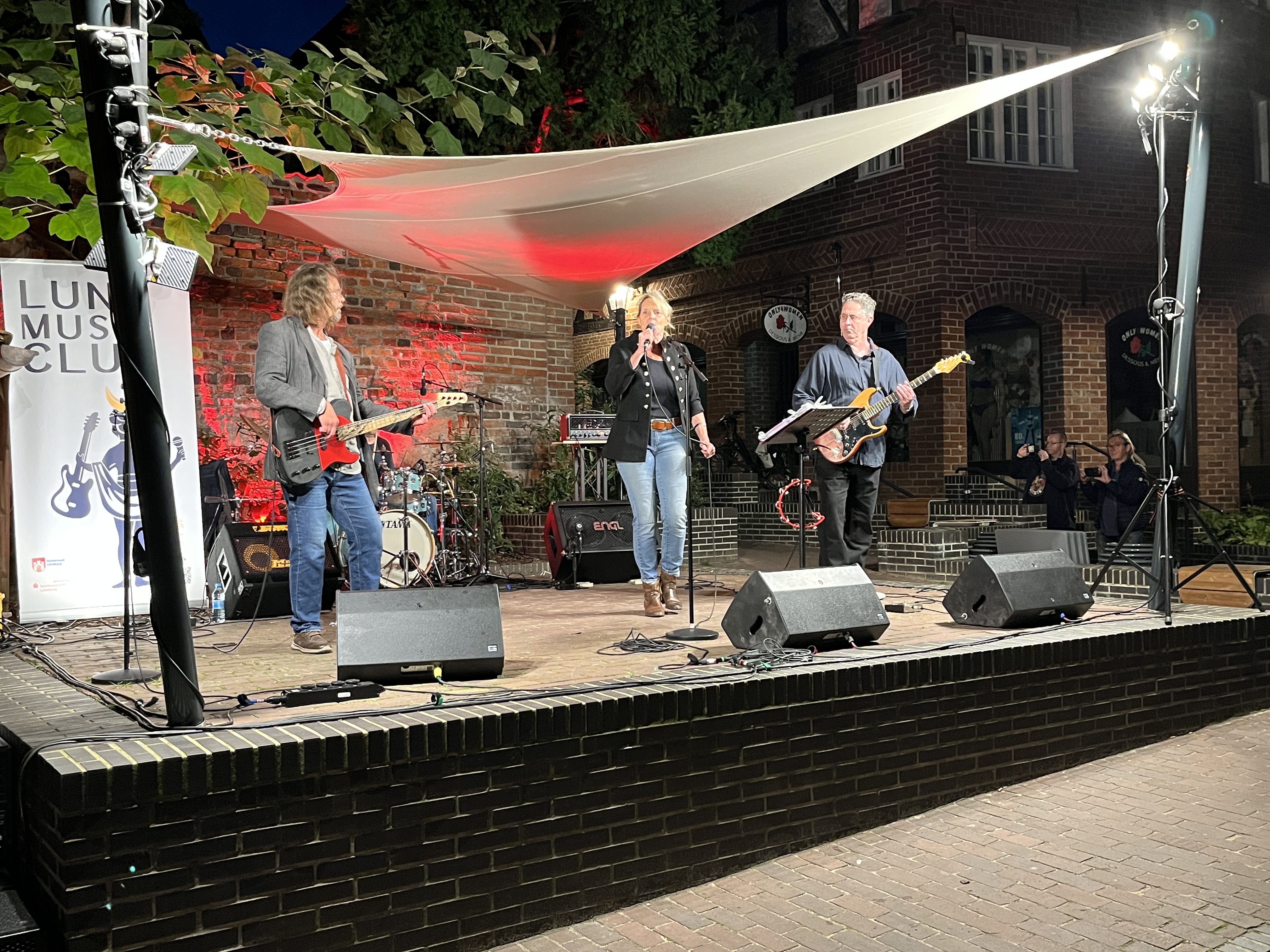 Miss D Groove, das sind Barbara Benthien (Gesang, Harp), Markus Portworsnick (E-Bass), Stefan Marten (Schlagzeug), Helge Petersen (E-Gitarre) und neu: Oliver Keinke (Rhythmusgitarre)(1). Miss D Groove wurde im Sommer 2015 in Lüneburg gegründet, hat also jetzt zehnjähriges Bandjubiläum. Die aktuelle Besetzung spielt seit drei Jahren zusammen – von den Gründungsmitgliedern sind noch Stefan und Helge dabei. Als neuestes Mitglied kam Oliver im Mai dieses Jahres dazu.